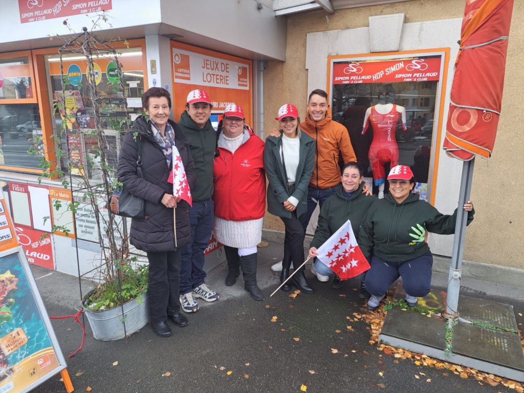 En ce mois de novembre 2025, nous avons la joie de mettre à l’honneur Janick, responsable du kiosque du Bourg et grande fan du cycliste Simon Pellaud, ainsi que Simon lui-même, parrain engagé de la Fondation.